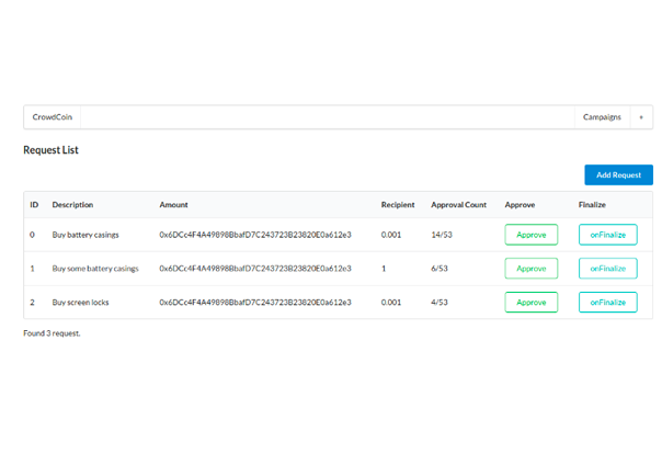 眾籌是指某人發起一個項目需求、其他人為自己的項目籌集資金。傳統的眾籌項目,常常會發生發起人拿到資金后跑路的現象。基于區塊鏈的眾籌項目很好的解決了這一難題。眾籌的資金放置在智能合約之中,并需要大多數贊助人投票才能完成一項任務。