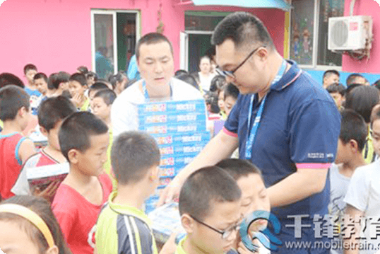 千鋒教育總部員工赴北京打工子弟文華學(xué)校,開展愛心助學(xué)公益活動(dòng),為孩子們捐贈(zèng)文具用品;